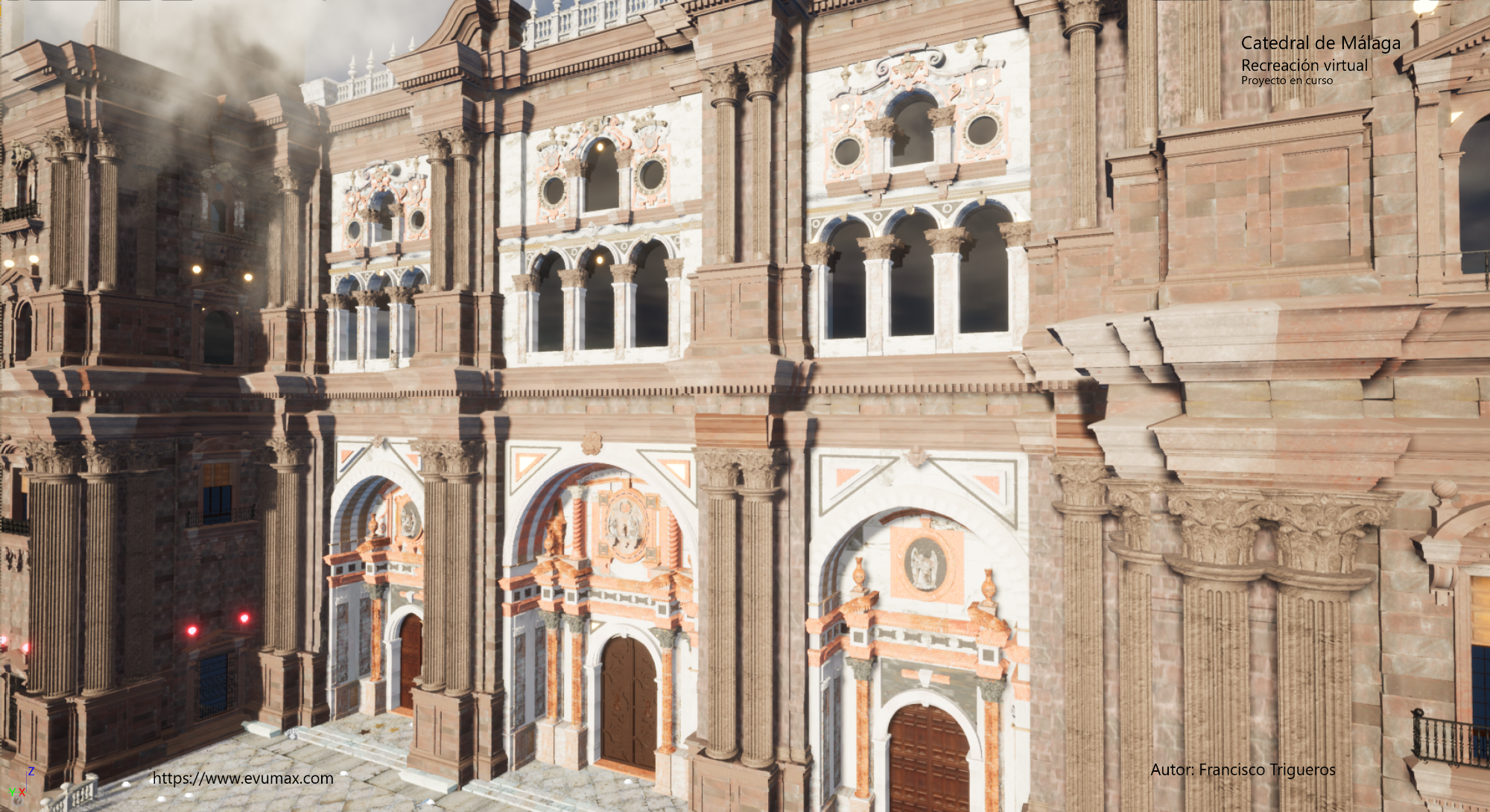 Recreación virtual de la Catedral de Málaga. Situada frente a la plaza del Obispo, el templo es considerado una de las joyas renacentistas más valiosas de Andalucía. (Proyecto en curso)